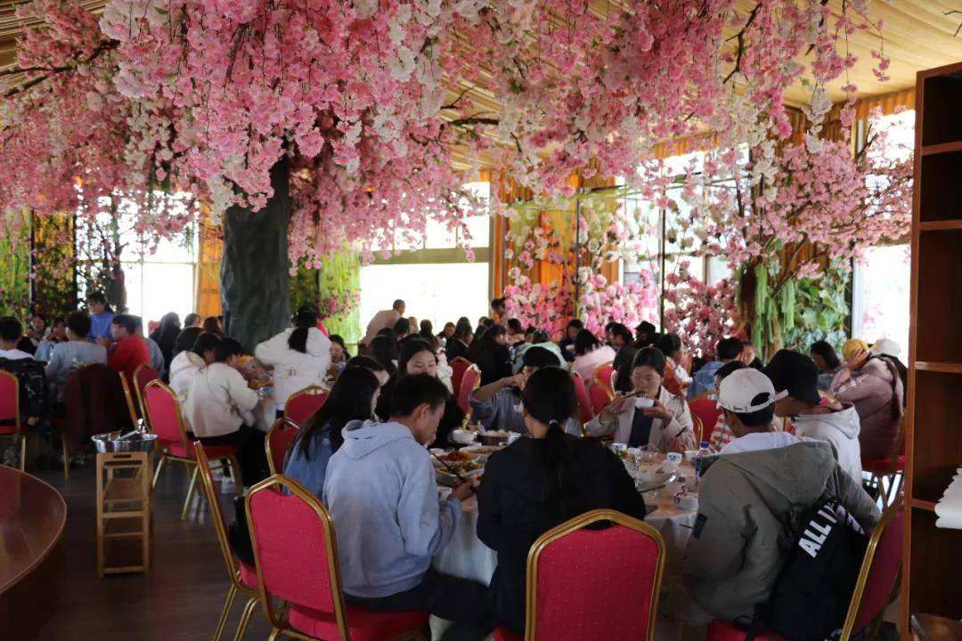 经过一上午的拓展活动,我们的同学们早已经饥肠辘辘,我们特意为大家准备了丰盛午餐,大家围坐在美味佳肴前,享受美食,连连称赞。