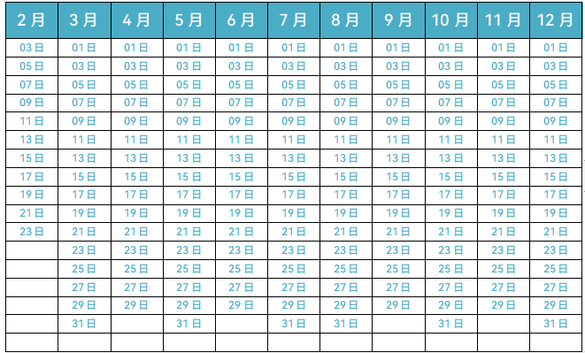 以下表格为集合日期