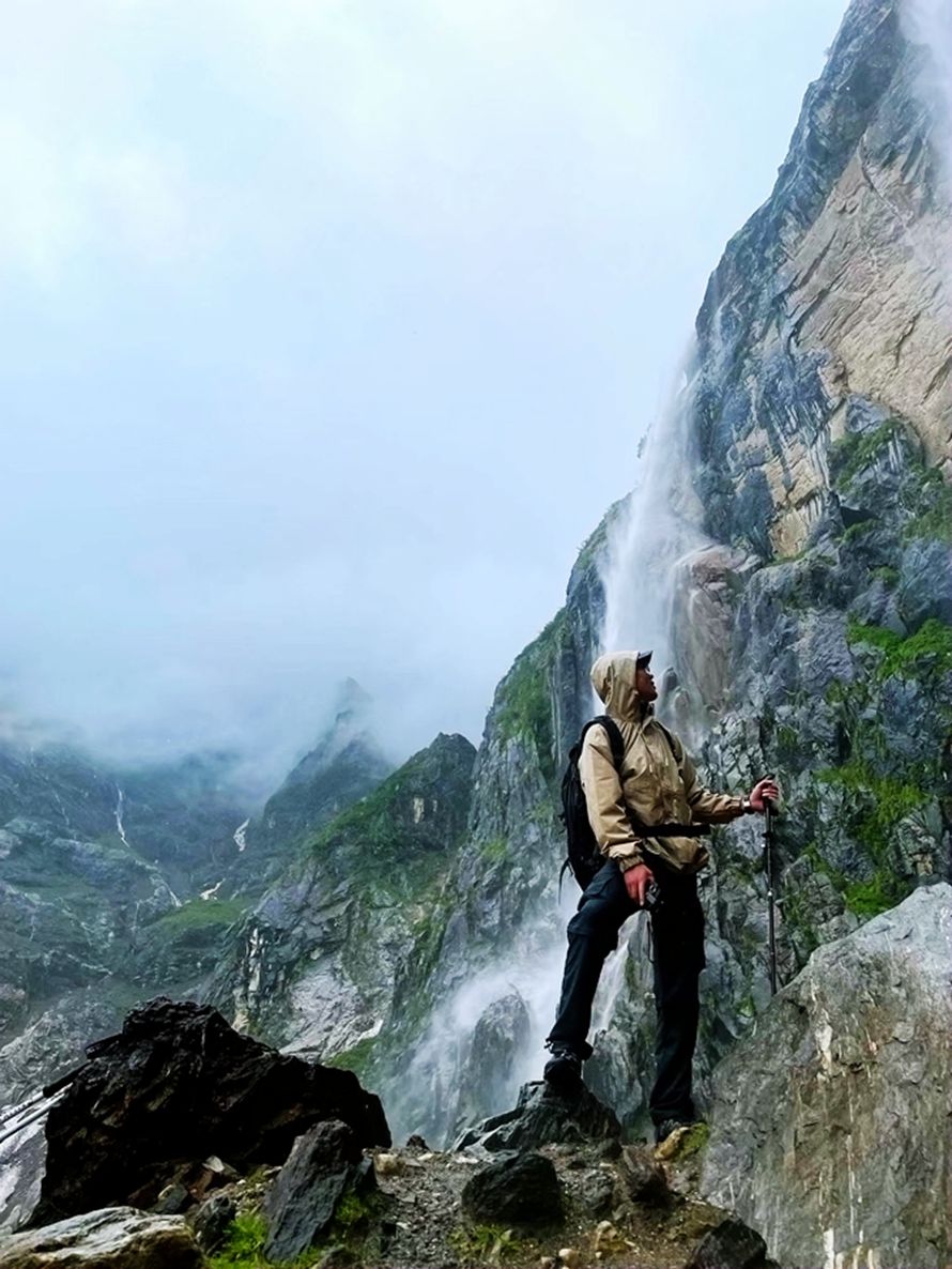 清晨用完早餐后, 从住宿地出发,经高海拔原始森林及杜鹃丛林,徒步将近2小时后翻过海拔3900米的上那宗拉丫口,直至雨崩河河底,再穿过一片原始松树林后就到达海拔3800米的【笑农大本营】;稍作休整后就向海拔4100米的【冰湖】进发;大约下午二点钟的时候开始返回,于黄昏六点钟左右返抵雨崩上村。